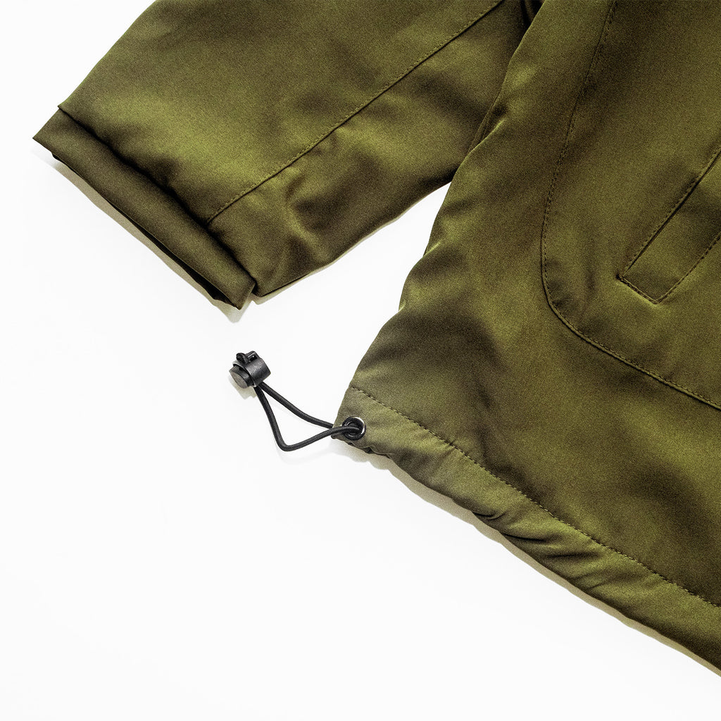 Olive finish with cool striping. Looks calm, feels secure, works hard. Your dependable outer layer for commutes, errands, or any day when the clouds look uncertain.