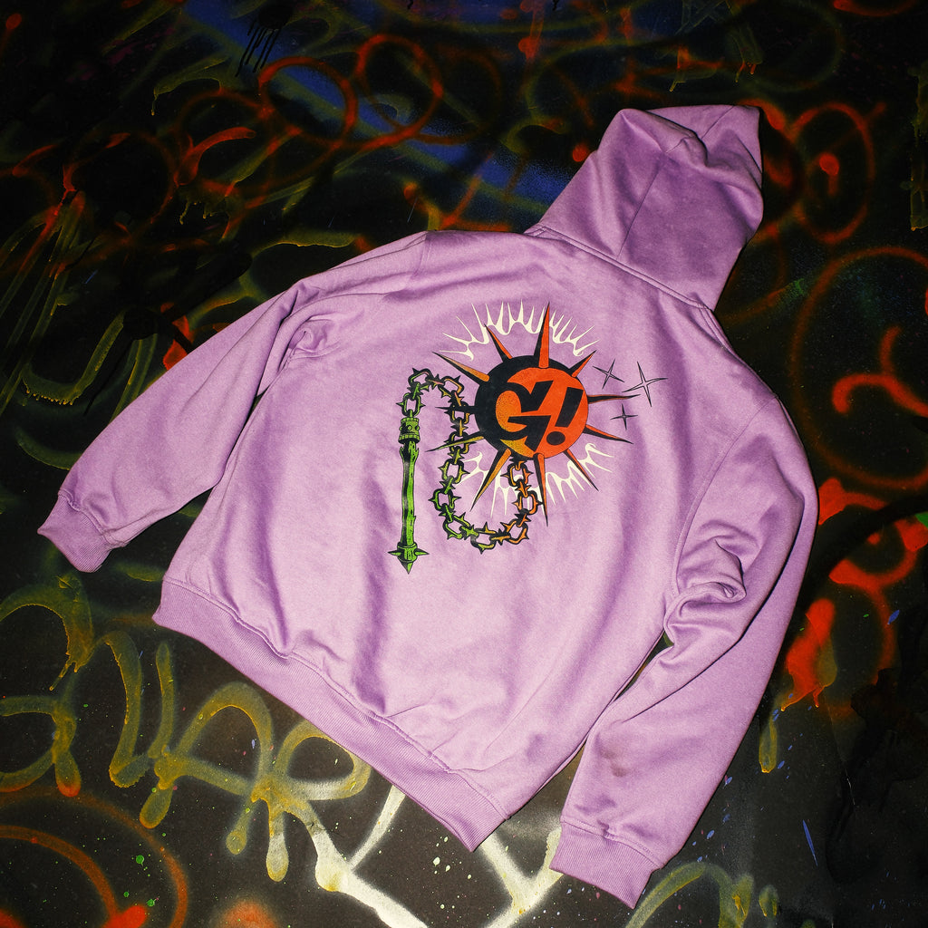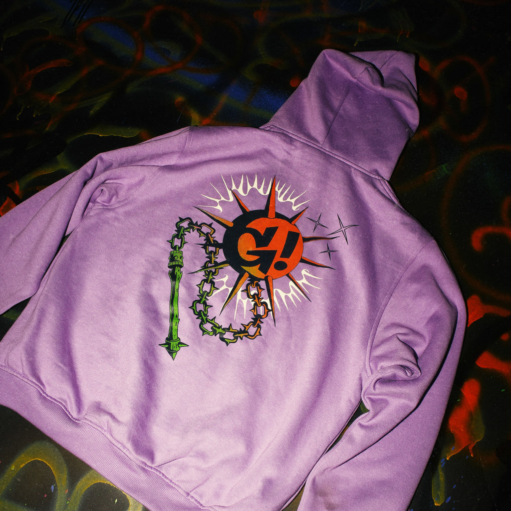 The Mace Hoodie is heavy on both fabric and attitude. Twisted sun graphics, spiked halos, and chains fuse into a piece that looks divine and destructive at the same time. Comfort meets chaos.